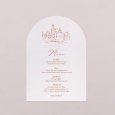 Avec son élégante découpe en forme d'arche, ce menu de mariage, assorti à vos faire-part, complétera merveilleusement votre décoration de table. Présentez-le sur un élégant porte-carte en bois (disponible en option), déposez-en un sur chaque assiette, sublimez-les d’un joli ruban…