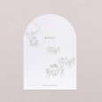 Avec son élégante découpe en forme d'arche, ce menu de mariage, assorti à vos faire-part, complétera merveilleusement votre décoration de table. Présentez-le sur un élégant porte-carte en bois (disponible en option), déposez-en un sur chaque assiette, sublimez-les d’un joli ruban…