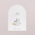 Avec son élégante découpe en forme d'arche, ce menu de mariage, assorti à vos faire-part, complétera merveilleusement votre décoration de table. Présentez-le sur un élégant porte-carte en bois (disponible en option), déposez-en un sur chaque assiette, sublimez-les d’un joli ruban…