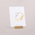 Assorti à votre faire-part, ce numéro de table agrémentera parfaitement votre décoration du jour J. Présentez-le sur un élégant porte-carte en bois (disponible en option), attachez-le à l’aide d’une ficelle autour d’un mason jar en verre garni de fleurs séchées… laissez parler votre imagination !
