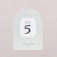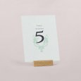 Assorti à votre faire-part, ce numéro de table agrémentera parfaitement votre décoration du jour J. Présentez-le sur un élégant porte-carte en bois (disponible en option), attachez-le à l’aide d’une ficelle autour d’un mason jar en verre garni de fleurs séchées… laissez parler votre imagination !