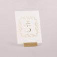 Assorti à votre faire-part, ce numéro de table agrémentera parfaitement votre décoration du jour J. Présentez-le sur un élégant porte-carte en bois (disponible en option), attachez-le à l’aide d’une ficelle autour d’un mason jar en verre garni de fleurs séchées… laissez parler votre imagination !