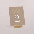 Assorti à votre faire-part, ce numéro de table agrémentera parfaitement votre décoration du jour J. Présentez-le sur un élégant porte-carte en bois (disponible en option), attachez-le à l’aide d’une ficelle autour d’un mason jar en verre garni de fleurs séchées… laissez parler votre imagination !