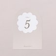 Assorti à votre faire-part, ce numéro de table agrémentera parfaitement votre décoration du jour J. Présentez-le sur un élégant porte-carte en bois (disponible en option), attachez-le à l’aide d’une ficelle autour d’un mason jar en verre garni de fleurs séchées… laissez parler votre imagination !
