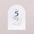 Assorti à votre faire-part, ce numéro de table agrémentera parfaitement votre décoration du jour J. Présentez-le sur un élégant porte-carte en bois (disponible en option), attachez-le à l’aide d’une ficelle autour d’un mason jar en verre garni de fleurs séchées… laissez parler votre imagination !