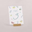 Assorti à votre faire-part, ce numéro de table agrémentera parfaitement votre décoration du jour J. Présentez-le sur un élégant porte-carte en bois (disponible en option), attachez-le à l’aide d’une ficelle autour d’un mason jar en verre garni de fleurs séchées… laissez parler votre imagination !