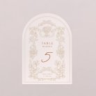 Placé au centre de chaque table, ce numéro de table en forme d'arche permettra à vos invités de repérer leur place d’honneur pour la soirée.