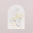 Assorti à votre faire-part, ce numéro de table agrémentera parfaitement votre décoration du jour J. Présentez-le sur un élégant porte-carte en bois (disponible en option), attachez-le à l’aide d’une ficelle autour d’un mason jar en verre garni de fleurs séchées… laissez parler votre imagination !