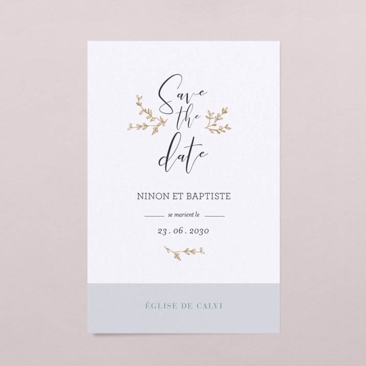 Seule la date de votre union suffit ! Vous pourrez compléter votre invitation avec le faire-part assorti, envoyé un peu plus tard.