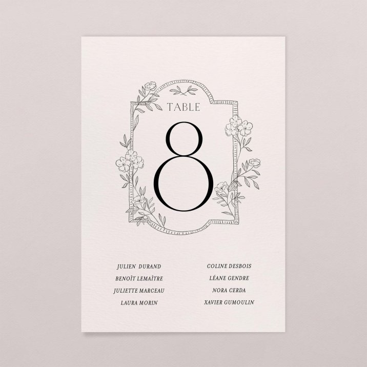 Autant de cartes que de tables, que vous afficherez à l'entrée de la salle pour aider vos convives à se placer à table le plus simplement du monde.