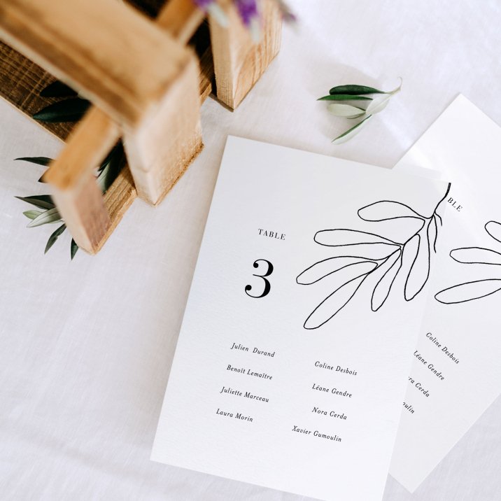 Autant de cartes que de tables, que vous afficherez à l'entrée de la salle pour aider vos convives à se placer à table le plus simplement du monde.