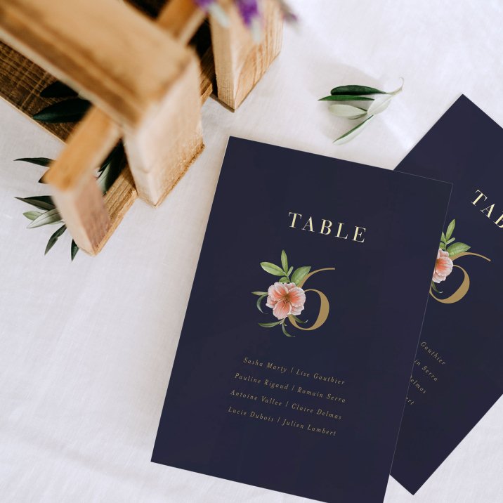 Autant de cartes que de tables, que vous afficherez à l'entrée de la salle pour aider vos convives à se placer à table le plus simplement du monde.