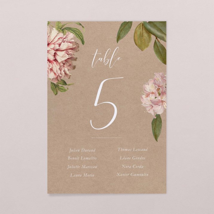 Autant de cartes que de tables, que vous afficherez à l'entrée de la salle pour aider vos convives à se placer à table le plus simplement du monde.