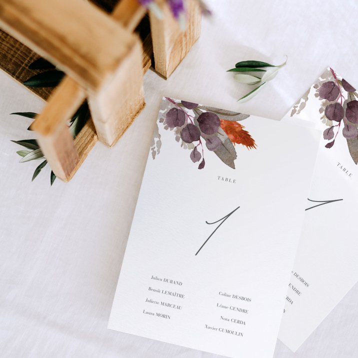 Autant de cartes que de tables, que vous afficherez à l'entrée de la salle pour aider vos convives à se placer à table le plus simplement du monde.