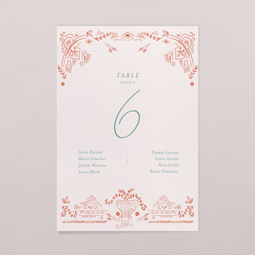 Autant de cartes que de tables, que vous afficherez à l'entrée de la salle pour aider vos convives à se placer à table le plus simplement du monde.