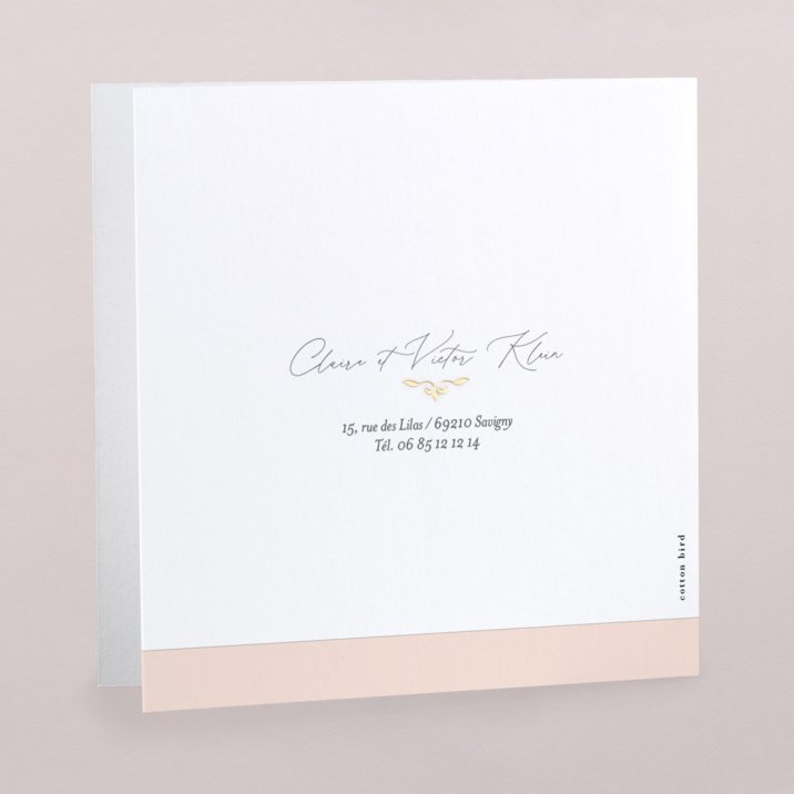 Faîtes de cette carte de remerciements un souvenir inoubliable en la personnalisant avec vos photos. Carte en papier haute qualité au toucher "peau de pêche", finition or.