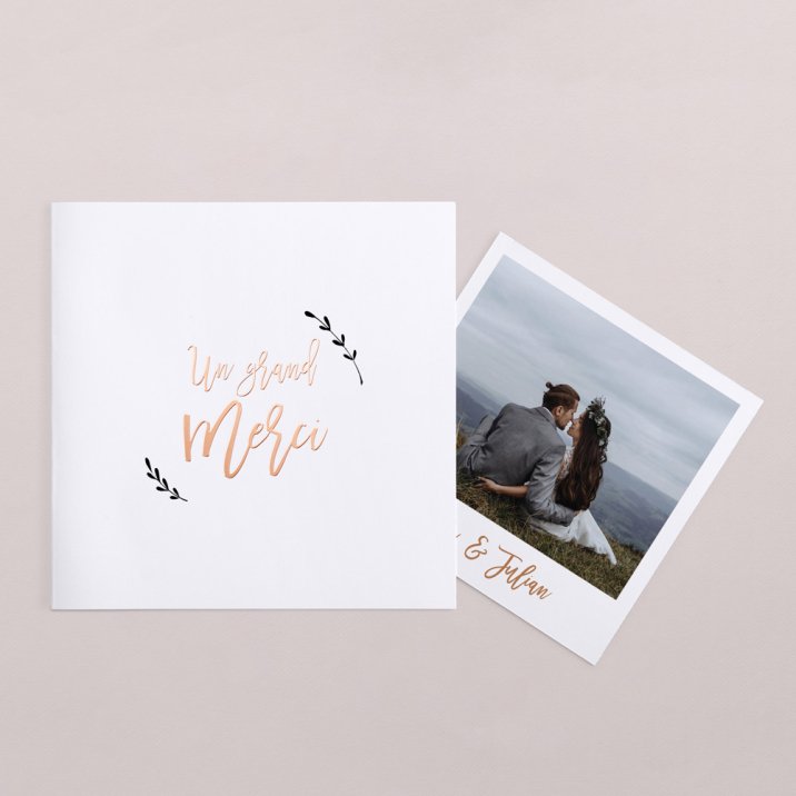 Cette carte de remerciements s'accompagne d'un cadeau souvenir : un polaroid (non magnétisé) glissé à l'intérieur, qu'ils pourront conserver, afficher, utiliser comme marque-page... en souvenir de cet évènement mémorable.