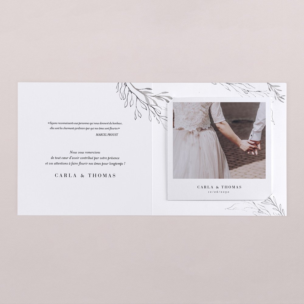 Cette carte de remerciements s'accompagne d'un cadeau souvenir : un polaroid (non magnétisé) glissé à l'intérieur, qu'ils pourront conserver, afficher, utiliser comme marque-page... en souvenir de cet évènement mémorable.
