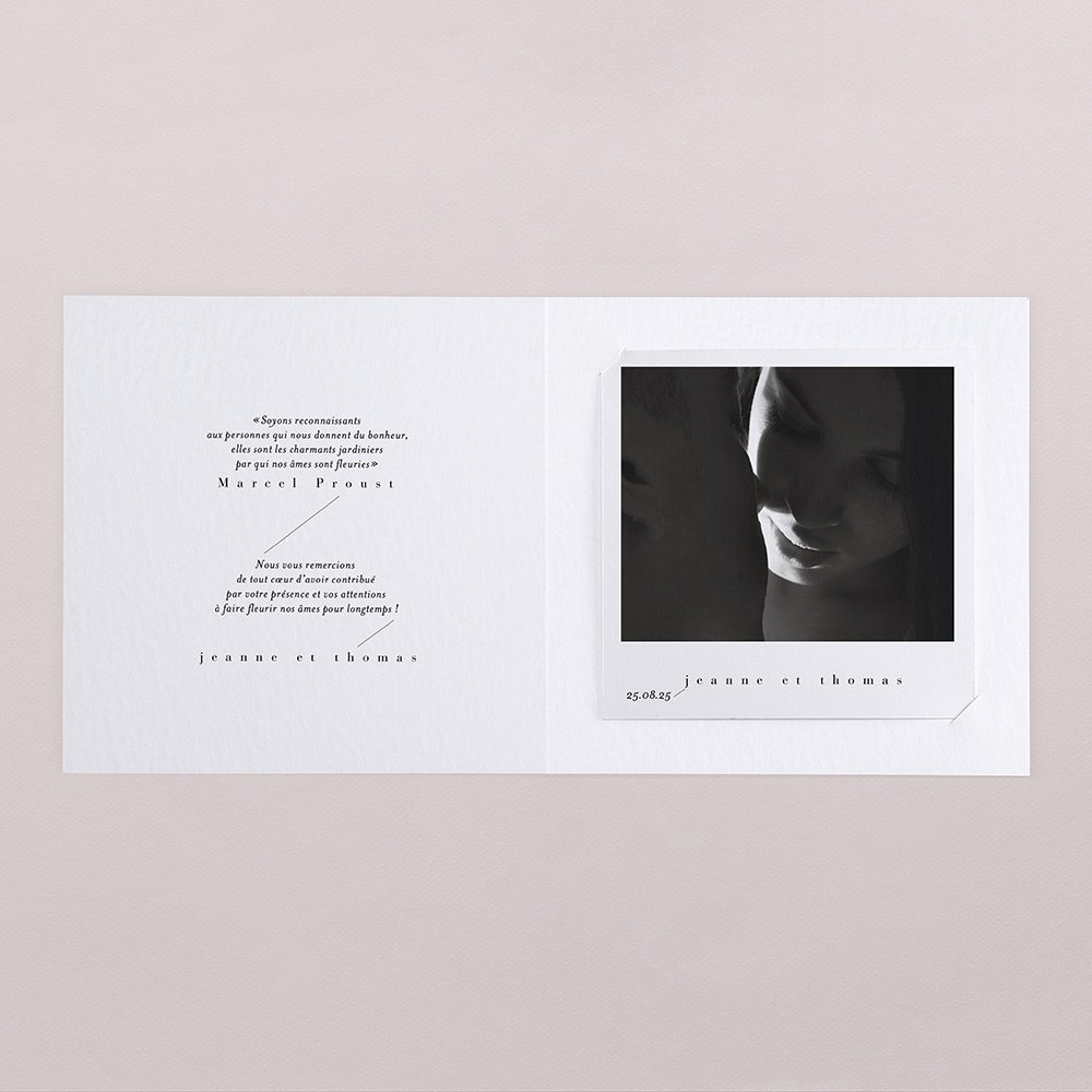 Cette carte de remerciements s'accompagne d'un cadeau souvenir : un polaroid (non magnétisé) glissé à l'intérieur, qu'ils pourront conserver, afficher, utiliser comme marque-page... en souvenir de cet évènement mémorable.