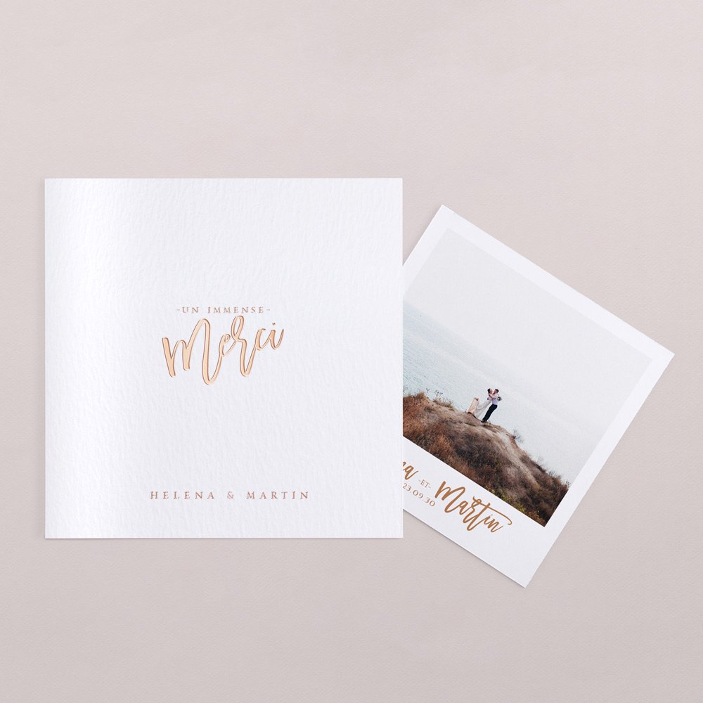 Cette carte de remerciements s'accompagne d'un cadeau souvenir : un polaroid (non magnétisé) glissé à l'intérieur, qu'ils pourront conserver, afficher, utiliser comme marque-page... en souvenir de cet évènement mémorable.