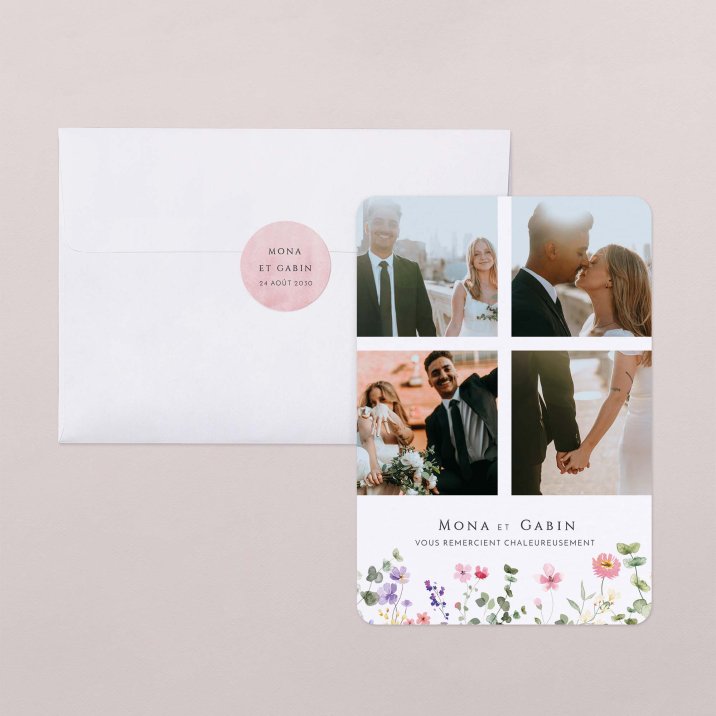 Une grande carte de remerciements en guise de souvenir. Le cadeau idéal pour remercier famille et amis et leur rappeler ces merveilleux moments passés en leur compagnie.