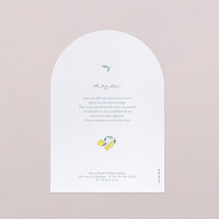 Remerciez famille et amis pour cette merveilleuse journée, avec cette carte de remerciements mariage en forme d'arche. Personnalisable au recto et au verso avec votre photo et votre petit mot, ce cadeau de papier rappellera à vos invités ces précieux moments de bonheur passés.