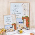 - Illustrations : plage, mer, bâtiment, fleurs, feuillages, feuilles, tables, parasols, maison, terrasse