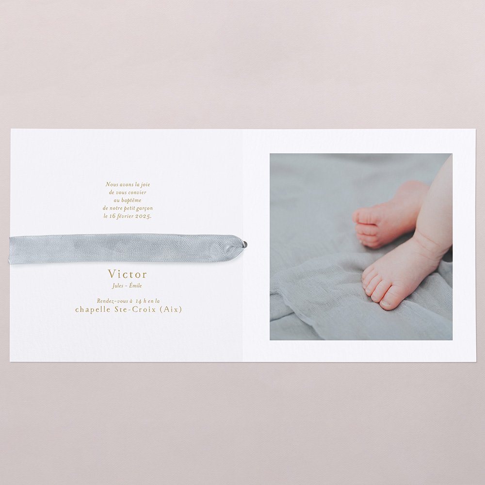 Ce faire-part se présente sous la forme d'une carte pliée par le milieu avec, à l'intérieur, une partie réservée à vos photos et l'autre à votre texte.