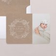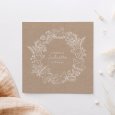 Sur le faire-part de baptême Ballet-kraft, une délicate couronne de fleurs et de feuillages s'esquisse sur un fond kraft naturel. Un tableau champêtre et raffiné, empreint de douceur, pour convier avec élégance à cette belle célébration.