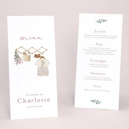 Ce faire-part de baptême présente un format portrait, avec des coins arrondis pour plus de douceur. Il est personnalisable au recto comme au verso.