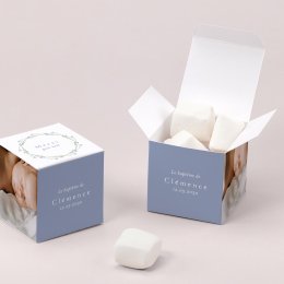 Ce faire-part de baptême présente un format portrait, avec des coins arrondis pour plus de douceur. Il est personnalisable au recto comme au verso.