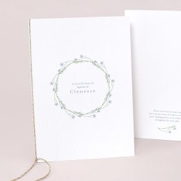 Sur le faire-part de baptême Violette, une jolie couronne de fleurs sublime l’invitation de votre enfant. Un modèle élégant et intemporel qui ravira vos invités.