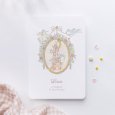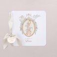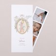 Un univers fantaisiste aux teintes pastel se dessine sur le faire-part de baptême Médaillon enchanté. Une licorne ailée, une girafe, un éléphant, un renard et d'autres charmants messagers se rassemblent sur cette création au charme vintage, annonçant avec une infinie tendresse le baptême de votre petite fille ou garçon.