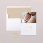 Ce faire-part de baptême se présente sous la forme d'une carte portrait, personnalisable au recto et au verso.