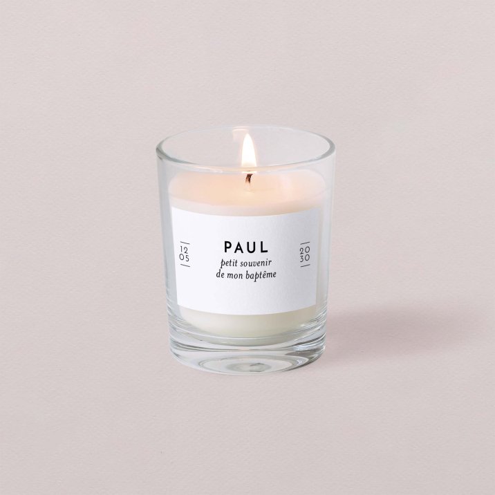 Remerciez les proches présents au baptême de votre enfant avec cette petite bougie personnalisée. Son délicat parfum aux notes de figuier rappellera à vos invités ce moment d’émotions partagées.