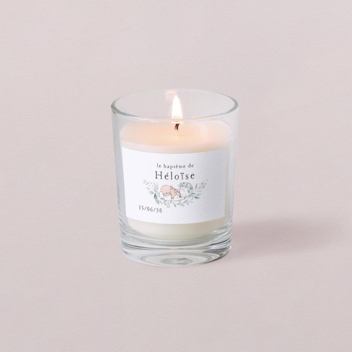 Remerciez les proches présents au baptême de votre enfant avec cette petite bougie personnalisée. Son délicat parfum aux notes de figuier rappellera à vos invités ce moment d’émotions partagées.