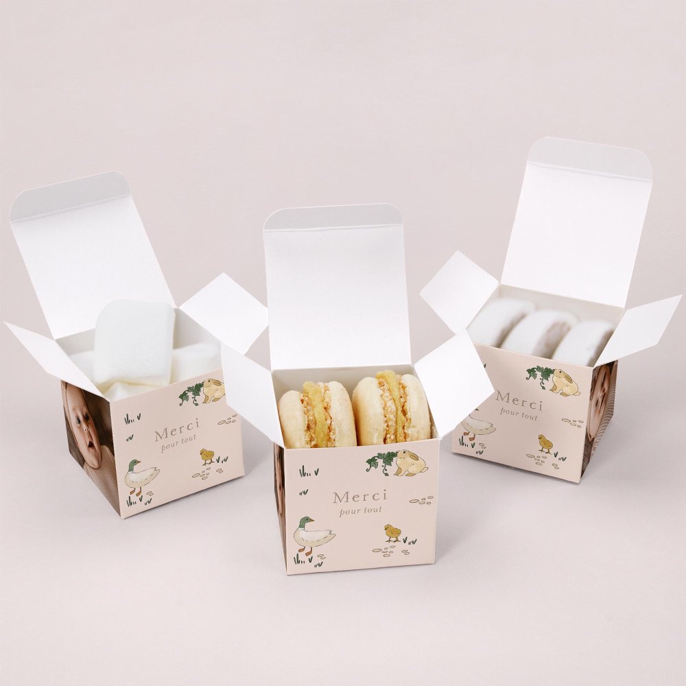 Pour enchanter vos invités, garnissez ce petit cube surprise de délicieuses dragées (disponibles en option), fabriquées artisanalement dans le sud de la France. Nous vous conseillons d’ajouter 20 dragées par boîte (50 g).