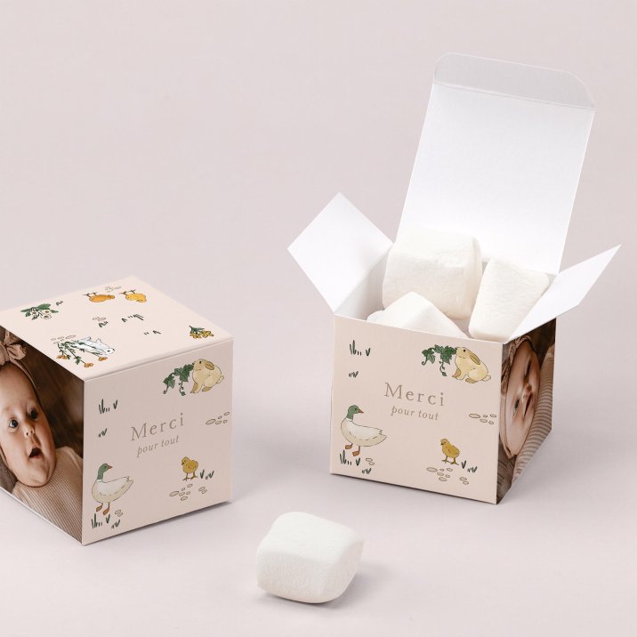 Offrez ce joli cube surprise à vos proches, en souvenir du baptême de votre enfant.