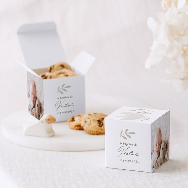 Offrez ce joli cube surprise à vos proches, en souvenir du baptême de votre enfant.