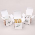 Pour enchanter vos invités, garnissez ce petit cube surprise de délicieuses dragées (disponibles en option), fabriquées artisanalement dans le sud de la France. Nous vous conseillons d’ajouter 20 dragées par boîte (50 g).