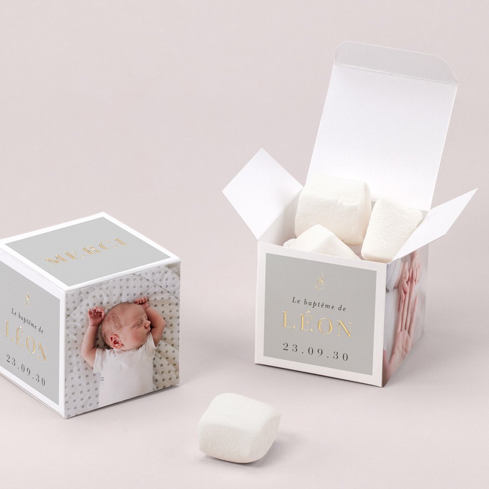 Offrez ce joli cube surprise à vos proches, en souvenir du baptême de votre enfant.