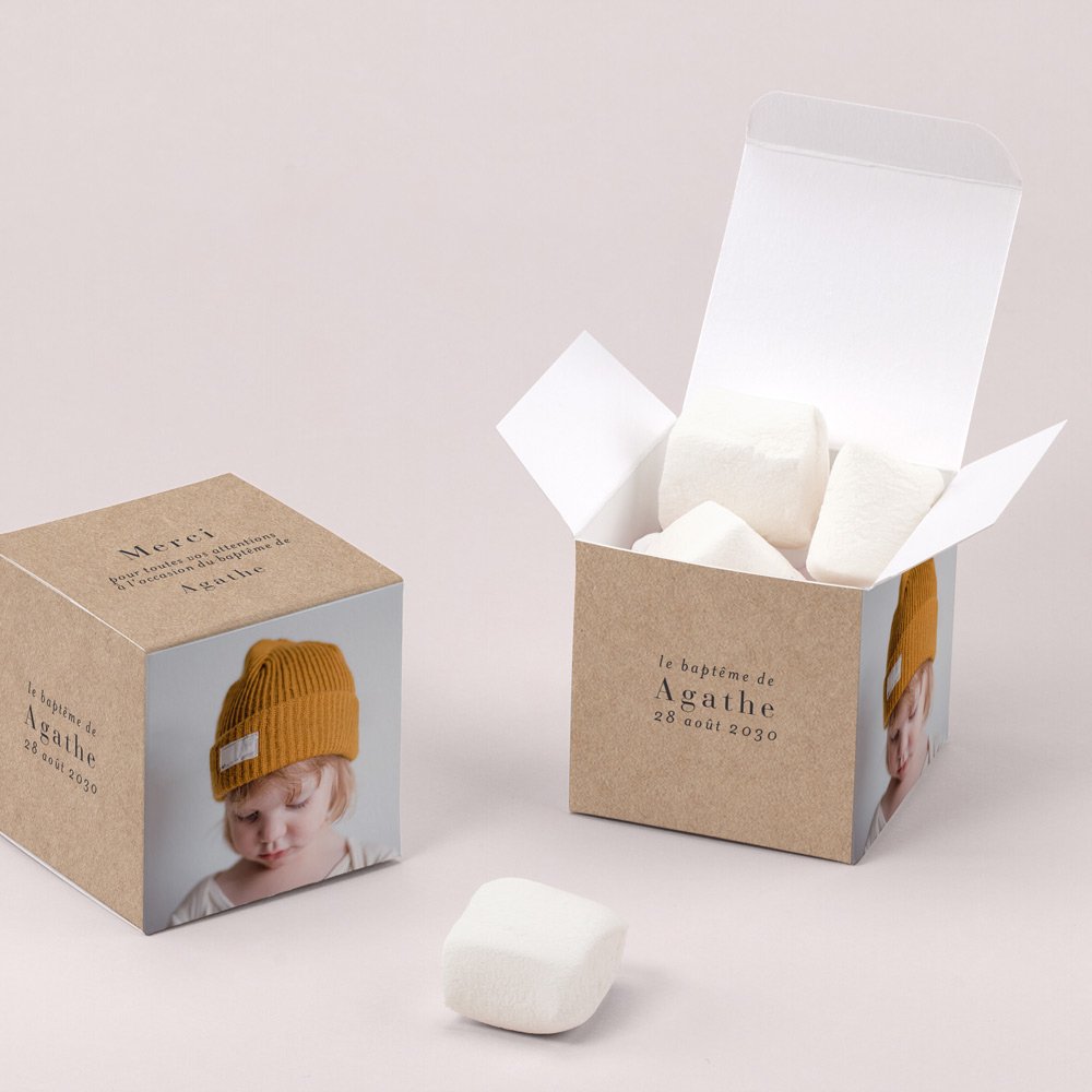Offrez ce joli cube surprise à vos proches, en souvenir du baptême de votre enfant.