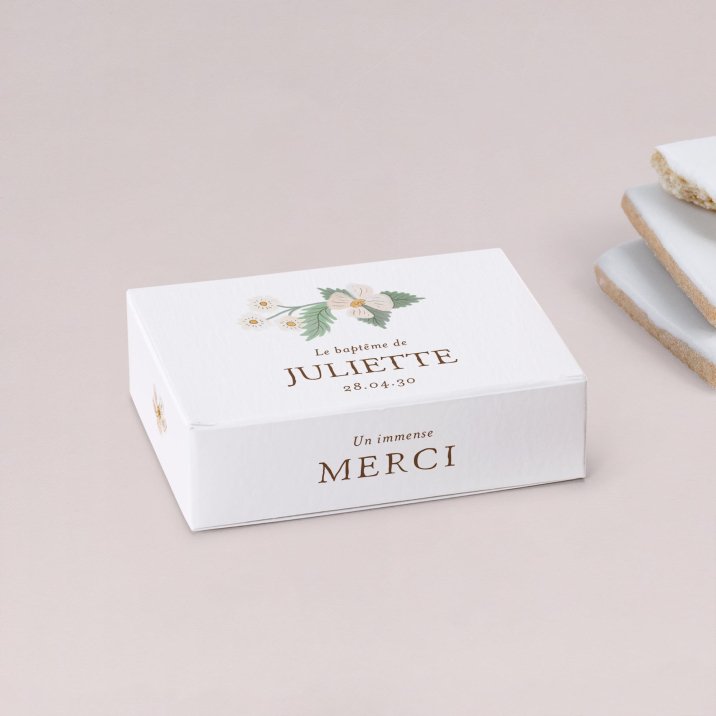 Offrez un élégant souvenir aux proches présents au baptême de votre enfant : la boîte à biscuits personnalisée.