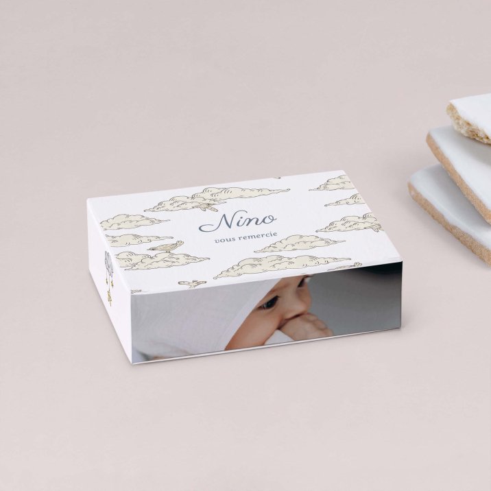 Offrez un élégant souvenir aux proches présents au baptême de votre enfant : la boîte à biscuits personnalisée.