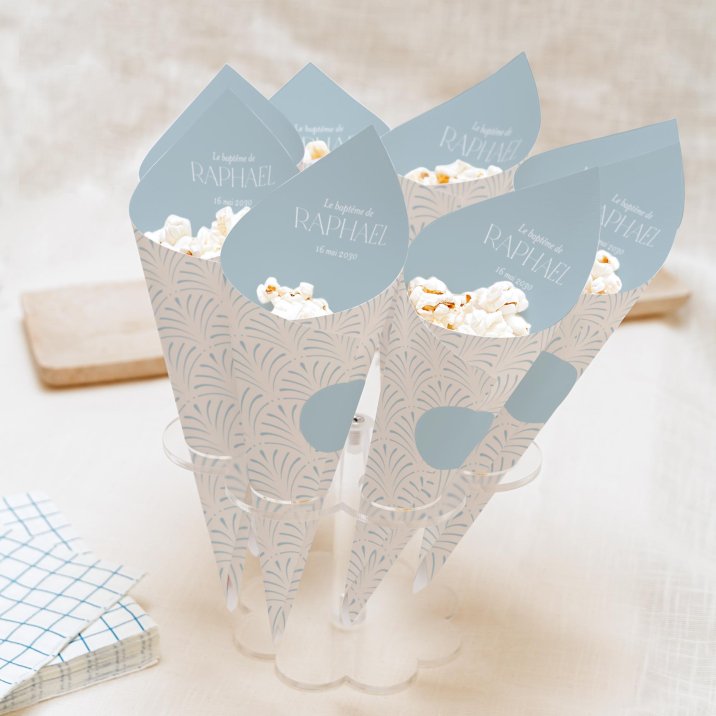 Cornets à garnir de gourmandises ou d'accessoires festifs à l'attention de vos invités : pop-corn, bonbons, confettis, pétales de fleurs...