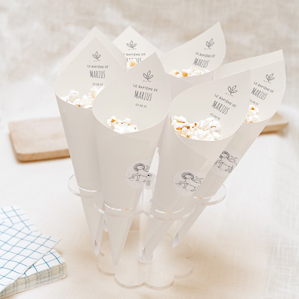 Cornets à garnir de gourmandises ou d'accessoires festifs à l'attention de vos invités : pop-corn, bonbons, confettis, pétales de fleurs...