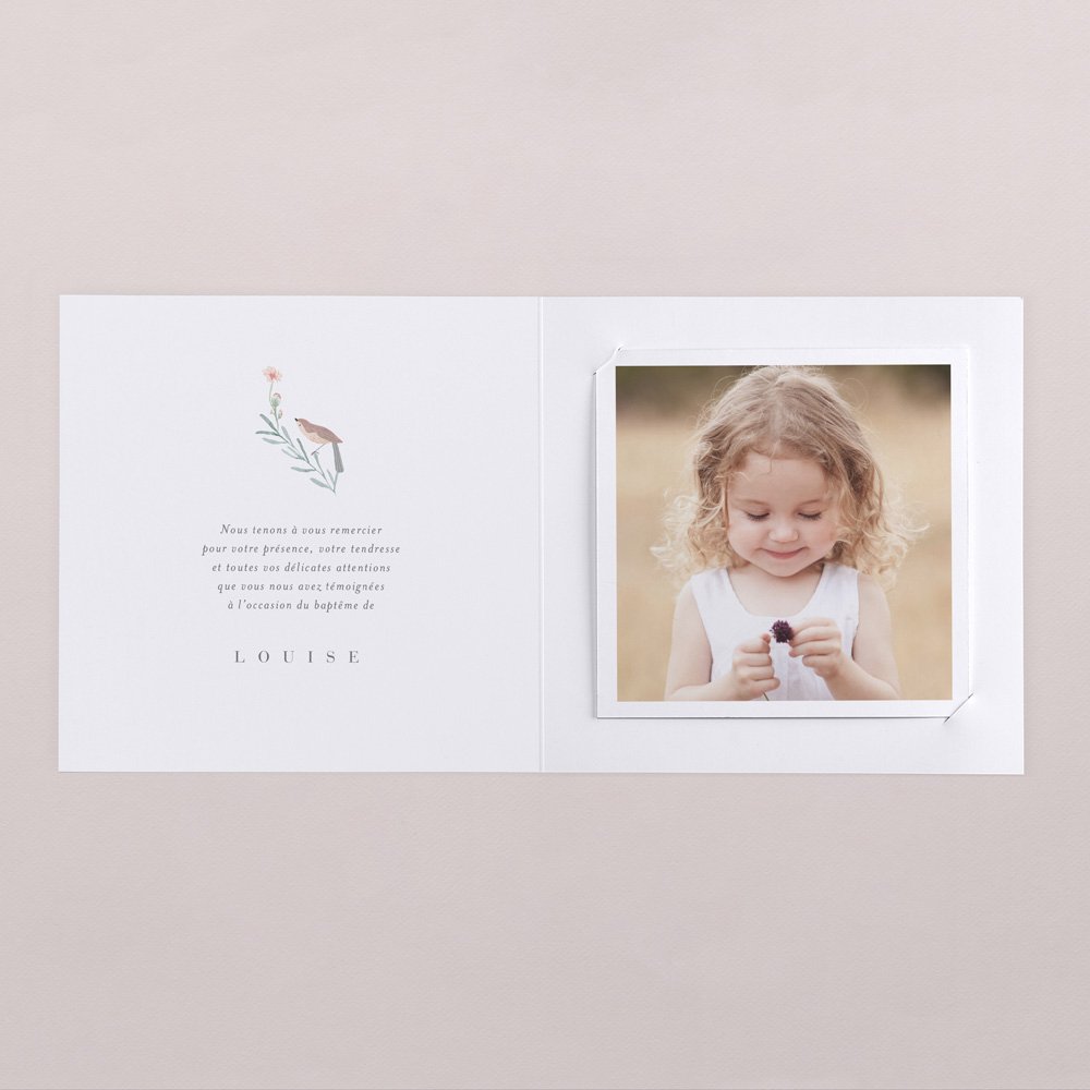 Remerciez les proches qui vous ont entouré et vous ont gâté d'attentions pour le baptême de bébé avec une jolie carte personnalisée.