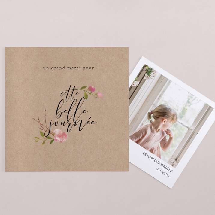 Remerciez les proches qui vous ont entouré et vous ont gâté d'attentions pour le baptême de bébé avec une jolie carte personnalisée.