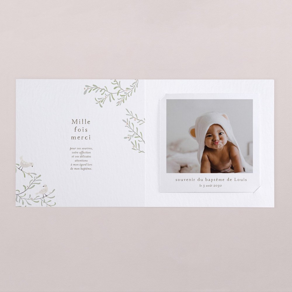 Cette carte de remerciements s'accompagne d'un cadeau glissé à l'intérieur : un polaroid (non magnétisé) de votre nouveau-né, qu'ils pourront conserver en souvenir, afficher selon leur inspiration, utiliser comme marque-page...