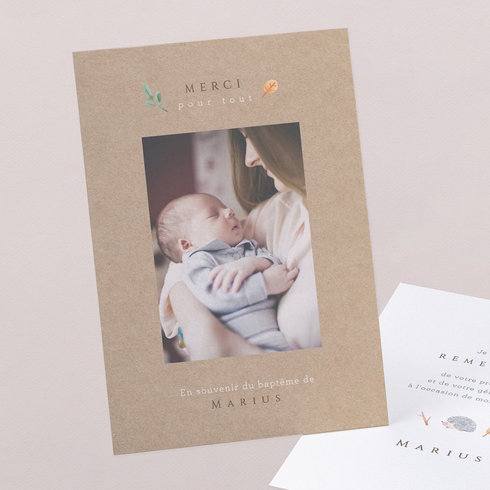 Remerciez les proches qui ont entouré votre enfant lors de son baptême avec une jolie carte de remerciement assortie au faire-part de ce grand jour.
